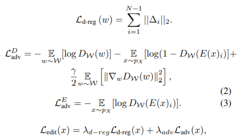 위 loss들은 encoder에서 얻은 latent vector가 W latent space에 close하도록 하는 loss이다. regularization loss, gan loss가 사용됐다. 이를 통해 e4e가 perceptual quality, editability를 잡을 수 있도록 했다.